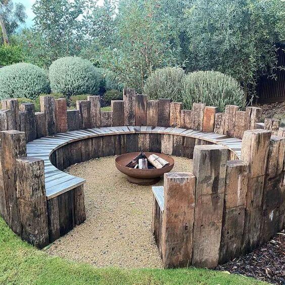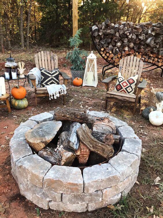 #20DIY Stone Fire Pit And Stump Seating For Backyard