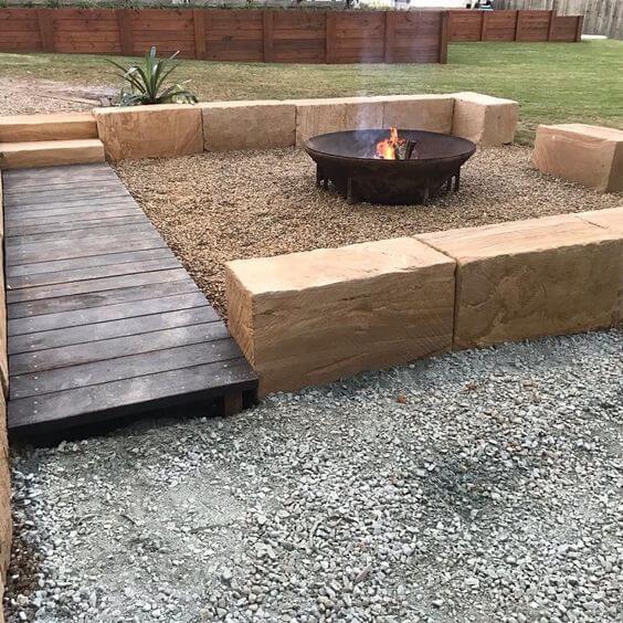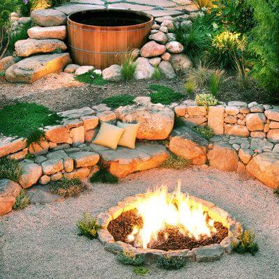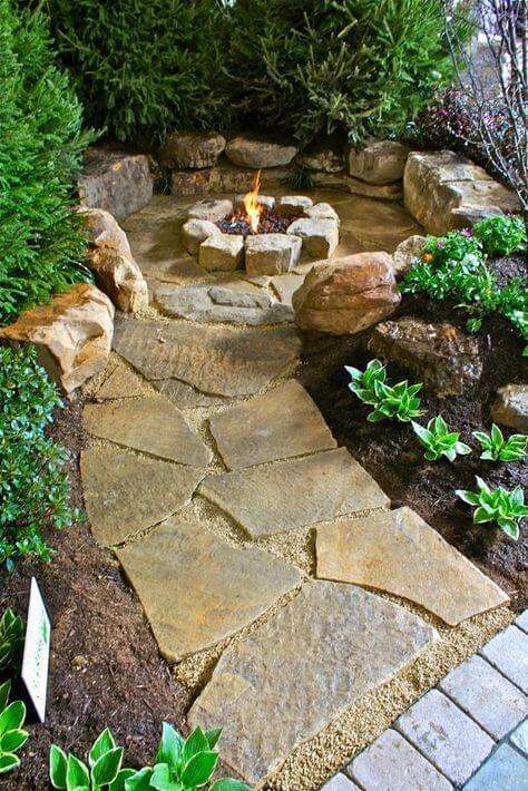 #14 An Outdoor Area Inspired By Rock For DIY Fire Pit, Seating And Pathway