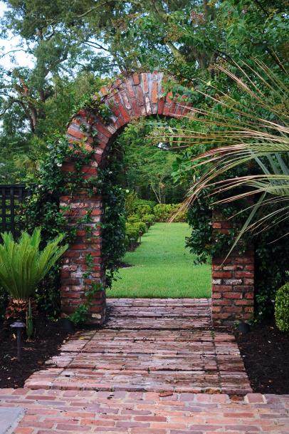 Construct brick arbors adorned with climbing vines and flowers, providing a natural and inviting entrance to different areas of your backyard.
