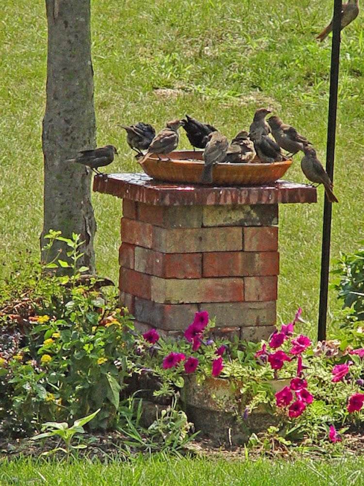 Craft a charming brick bird bath, attracting feathered friends to your backyard while adding a touch of natural elegance.