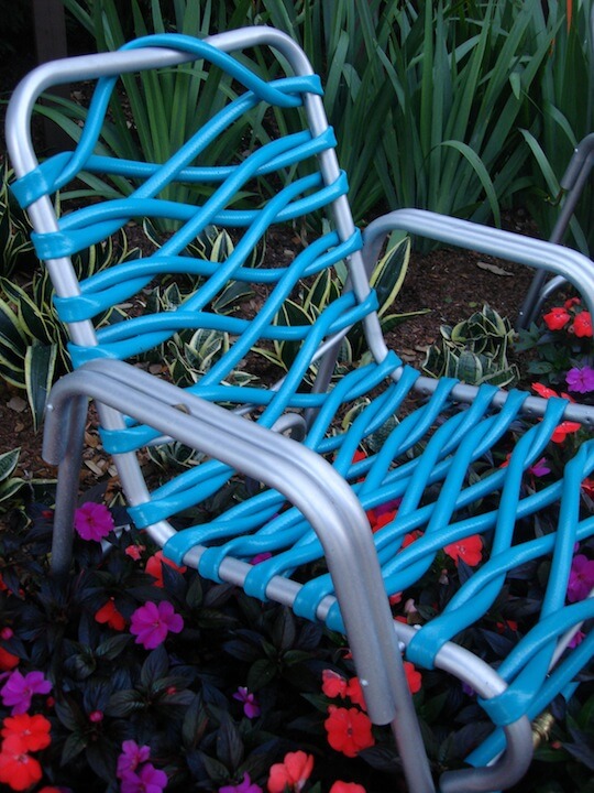 #11 A Recycle Chair Made Out Of Old Metal Chair Frame And Leaky Garden Hose