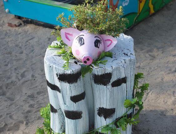 Step 4: Plant a small green or flowering plant so it looks like the pig has hair. Attach the pig’s face to the front using nails or strong adhesive.